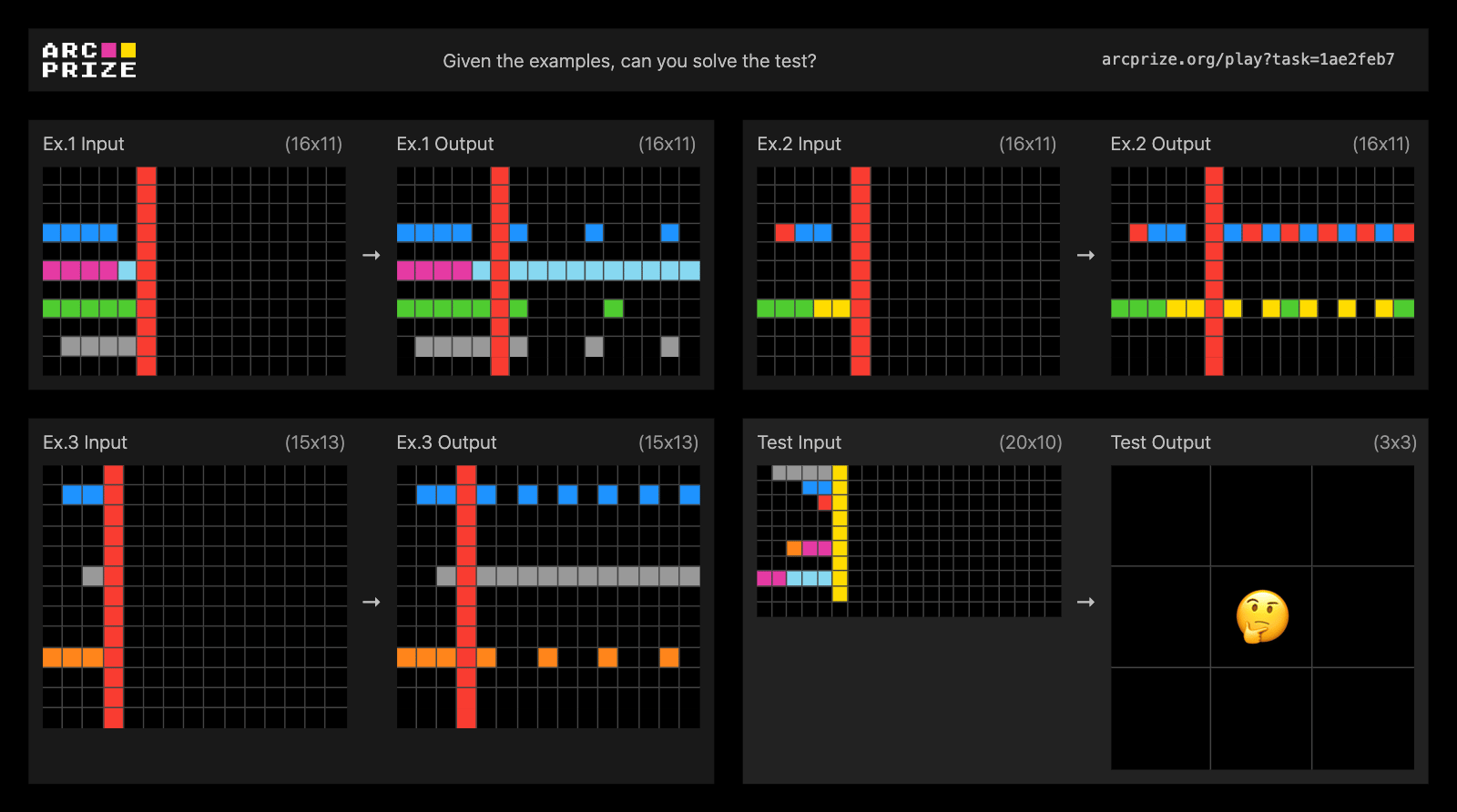 ARC is a benchmark created by François Chollet. The idea is simple: you’re given a few example grids showing how an input grid transforms into an output grid. Then you’re given a new input grid and asked to produce the correct output by discovering the rule behind the transformation.